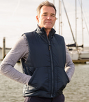 Polyester outer. Dark grey fleece lining. Polyester padding. Showerproof and windproof. Slightly padded deep collar. Collar high full length zip. Deep cut armholes. Inner chest pocket and media pocket. Deep patch pockets. Curved back hem. Cut out label. Zip access for decoration.